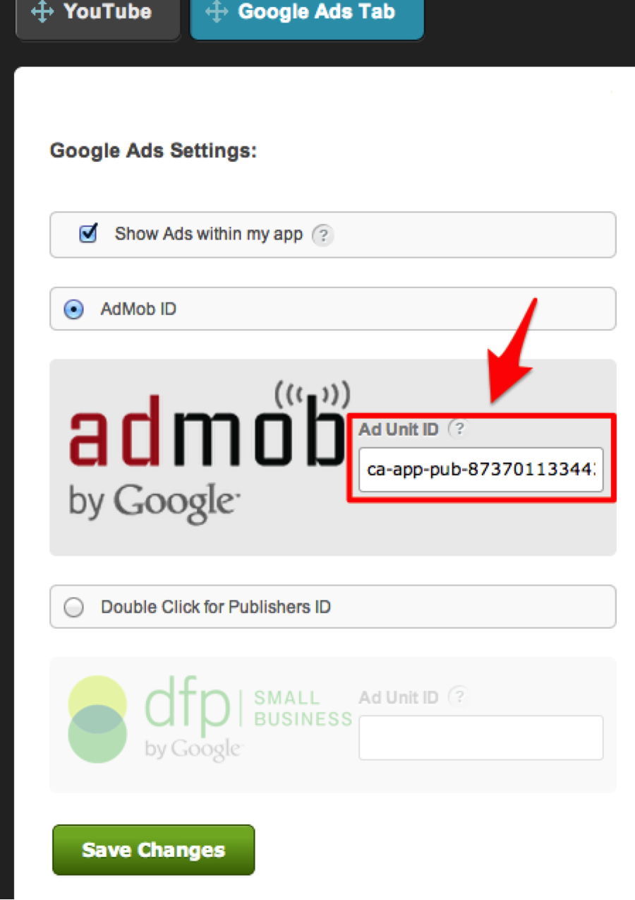 4. Copy & paste your unit ID into the Ad Unit ID field of the Google ads tab, and save!
